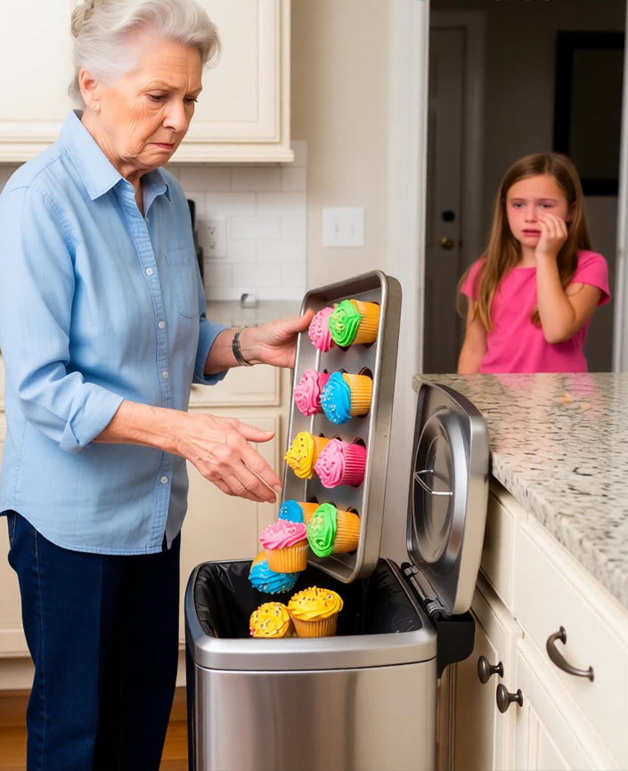Kada sam kasnije ušla u kuhinju, istina me je pogodila bez upozorenja. Kolači su bili u smeću. Zgnječeni papirni kalupi, razmazana glazura, šarene mrvice razbacane po crnoj kesi.