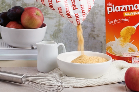 - Kada se dobije fina, ujednačena kremasta masa, dodajte mljeveni Plazma keks.