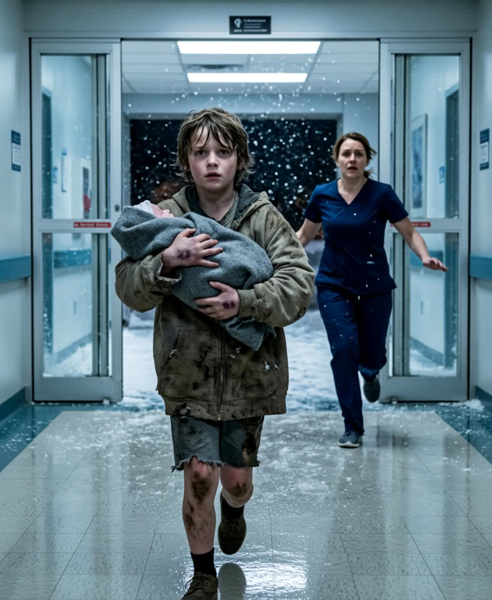 Sedmogodišnje dijete, boso, promrzlo i iscrpljeno, ušlo je u hitnu pomoć noseći u naručju svoju bebu sestru. Nije plakao. Nije tražio pomoć glasno. Samo je šapnuo nekoliko riječi medicinskoj sestri — riječi koje su slomile srca osoblju i pokrenule lanac događaja koji će zauvijek promijeniti njihove živote.