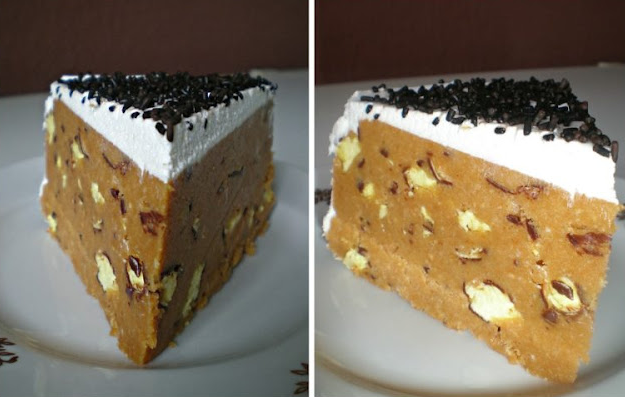 Ovaj desert ne zahteva pečenje, ali je važno da se dobro ohladi. Ostavite ga preko noći u frižideru kako bi se svi ukusi sjedinili i masa očvrsla.