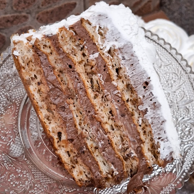 Ako volite torte koje spajaju profinjenu teksturu, zrelu orašastu aromu i dubok, čokoladni šarm, Čoko romanska torta je pun pogodak. Ovaj desert se slaže od četiri tanke, elastične kore sa orahom i lešnikom, koje se blago natapaju mlekom da bi ostale sočne, a između njih ide raskošan krem od žumanaca, čokolade, pudinga i gustina. Rezultat je torta koja je istovremeno stabilna za sečenje i mekana pod viljuškom, sa lepo izbalansiranom slasti i punoćom ukusa.