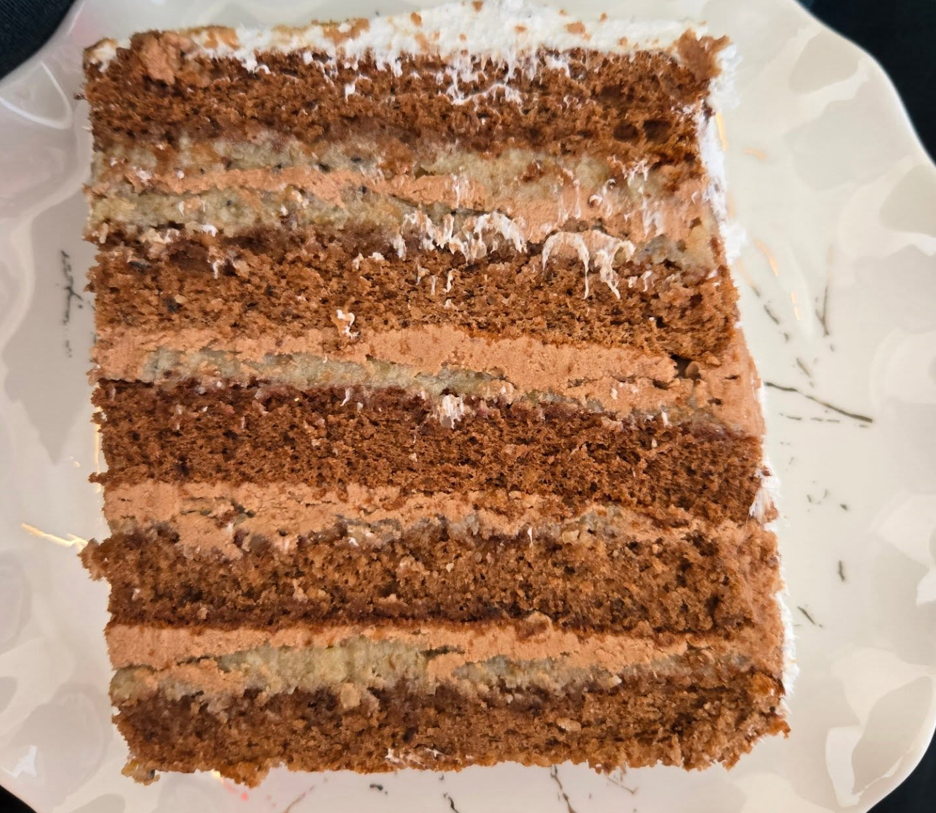 Kada se sve složi, kolač treba da odstoji nekoliko sati, a idealno bi bilo da prenoći u frižideru. Tokom tog vremena, svi ukusi se sjedine i nastane onaj prepoznatljivi „vulkanski efekat“ – slojevi se stapaju, čokolada postaje kremasta, a orasi daju onu zemljanu notu koja savršeno uravnotežuje slatkoću.