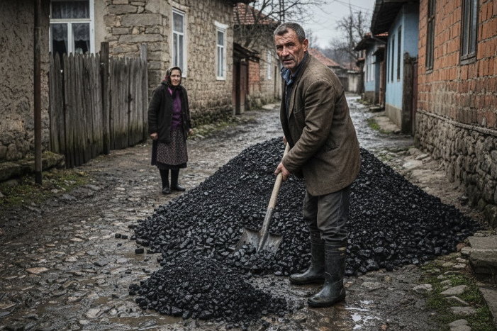 Kiša je ubrzo prešla u ledenu susnežicu. Milan je radio lopatu po lopatu, neumorno, ritmično, kao mašina. Bio je mokar, blatnjav, umoran, ali nije stajao. Ugalj je nestajao sa ulice i završavao u šupi, baš tamo gde je trebalo.