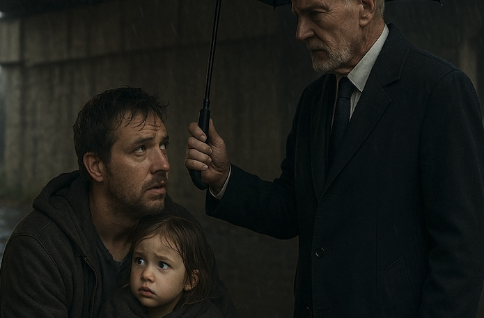 Kiša je lila kao iz kante. Pokušavao sam zakloniti dijete svojim tijelom kada sam ugledao siluetu. Kroz pljusak se približavala visoka figura. Stariji muškarac, u crnom odijelu, sa kišobranom koji se savršeno nosio s vremenom. Čak su mu cipele bile čiste.