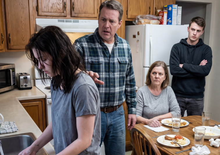 Za stolom, toplo obučeni, sedeli su njen muž Mark i njegova majka, Eleanor. Ispred njih su bili tanjiri sa toplom hranom. Smeh je odjekivao prostorijom. Eleanor je pomerila prazan tanjir, a Mark je naglo ustao i zapovedio: