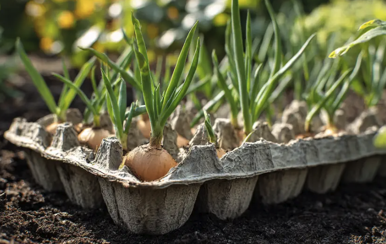 Jedna zanimljiva i praktična tehnika koja pomaže u rješavanju tih problema jeste sadnja luka pomoću kartonskih posuda za jaja. Ova metoda funkcioniše kao prirodna mreža za raspored biljaka, omogućava uredne gredice i pomaže u kontroli korova. Kartonske posude se s vremenom razgrađuju u zemlji, djelujući kao prirodni biorazgradivi malč koji dodatno poboljšava strukturu tla.