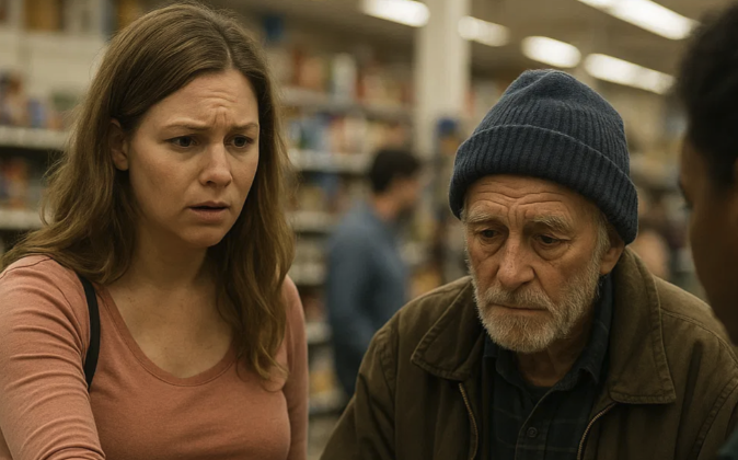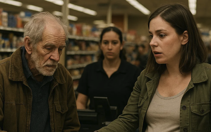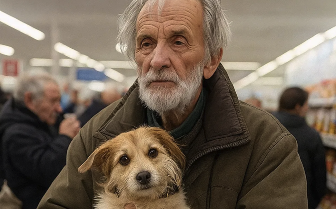 Stariji čovjek, sa kaputom koji je nekad bio bež, sada blijed i pun zakrpa. I pas – mješanac, srednje veličine, čupav i očigledno izgladnio, s repom koji se trzao svaki put kad bi mu vlasnik pogledao u oči. Stajali su kod kase.