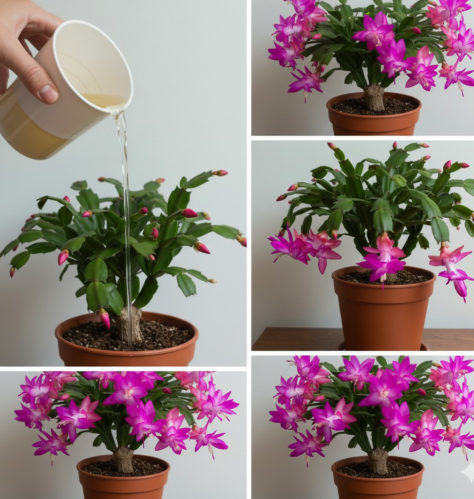Božićni kaktus nije biljka koja traži obilje hrane, ali redovno i umereno prihranjivanje daje vidljive rezultate. Prihranjujte od proleća do početka jeseni jednom mesečno, koristeći tečno đubrivo razblaženo na pola preporučene jačine. U jesen i zimu, tokom faze cvetanja i mirovanja, obustavite prihranu. Previše đubriva može izazvati rast lišća na račun cvetova.