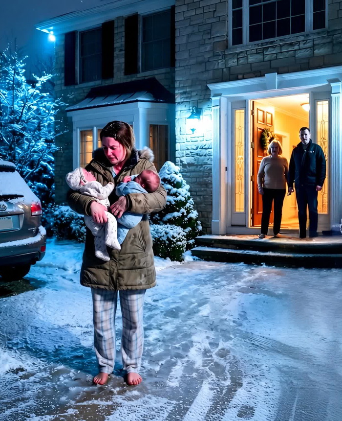 Te noći, dok su pahulje tiho padale, mlada žena je stajala ponosna, sa blizancima u naručju, u domu koji je konačno bio njen — ne po sili, već po pravdi.