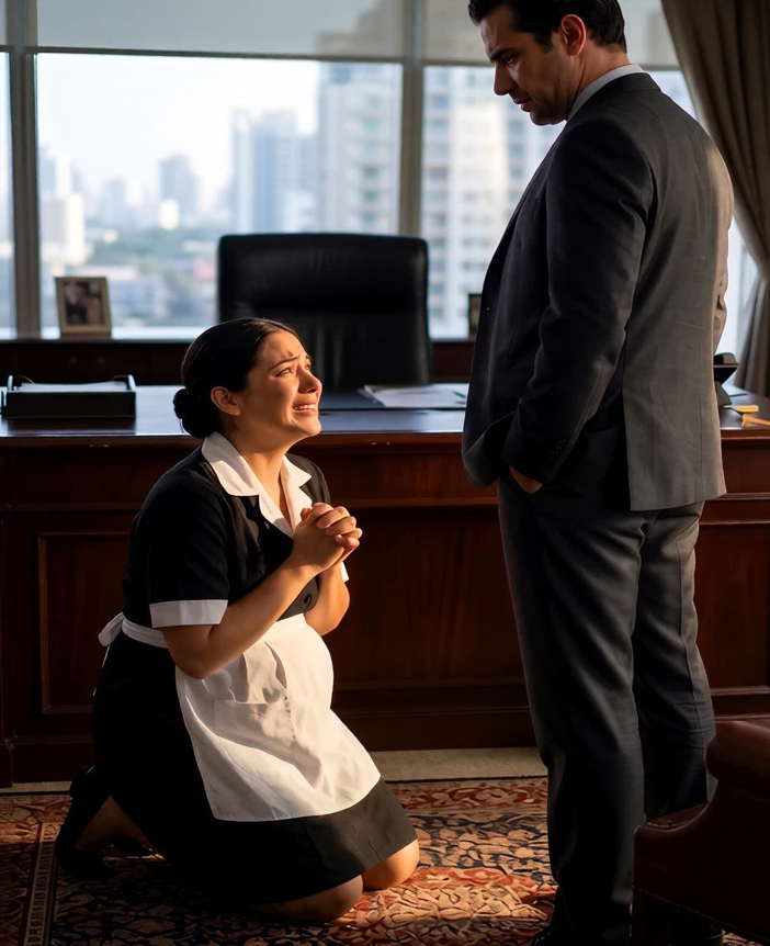 U srcu velikog grada, u zdanju koje odiše moći i bogatstvom, desila se scena koja bi mogla promeniti nečiji život zauvek. Camila, trudna osmom mesecu, klečala je na hladnom mermeru kancelarije jednog od najmoćnijih muškaraca u zemlji, Don Ricarda. Suze su joj kapale niz lice, mešajući se sa hladnim znojem, dok je telo drhtalo ne samo od straha, već i od oštrog bola u donjem delu leđa i pritiska u stomaku.