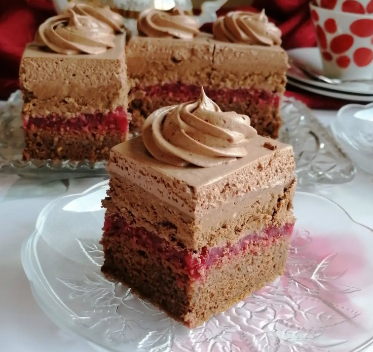 Ovaj fil nanosi se preko voćnog sloja i ravnomerno razmazuje. Kombinacija maline i čokolade u istom kolaču stvara nezaboravan kontrast – voćna svežina i čokoladna punoća savršeno se dopunjuju.