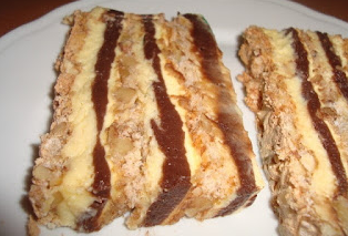 - Pokrijte sa drugi list biskvita i nanesite crni fil (drugu kremu).