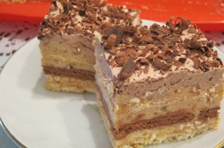 - Zatim ide sloj pti-ber keksa sa čokoladom, takođe natopljenog u mleko, koji dodaje bogat čokoladni ukus.