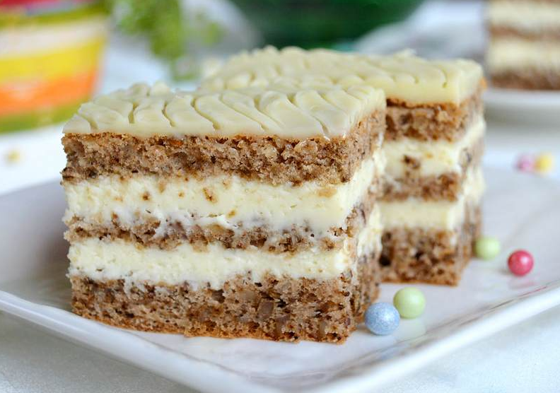Kolač će dati svoj puni okus tek nakon vremena odmora. Stavite ga u frižider najmanje nekoliko sati, idealno preko noći — tada se svi ukusi smiruju i kolač postaje lakši za sečenje.