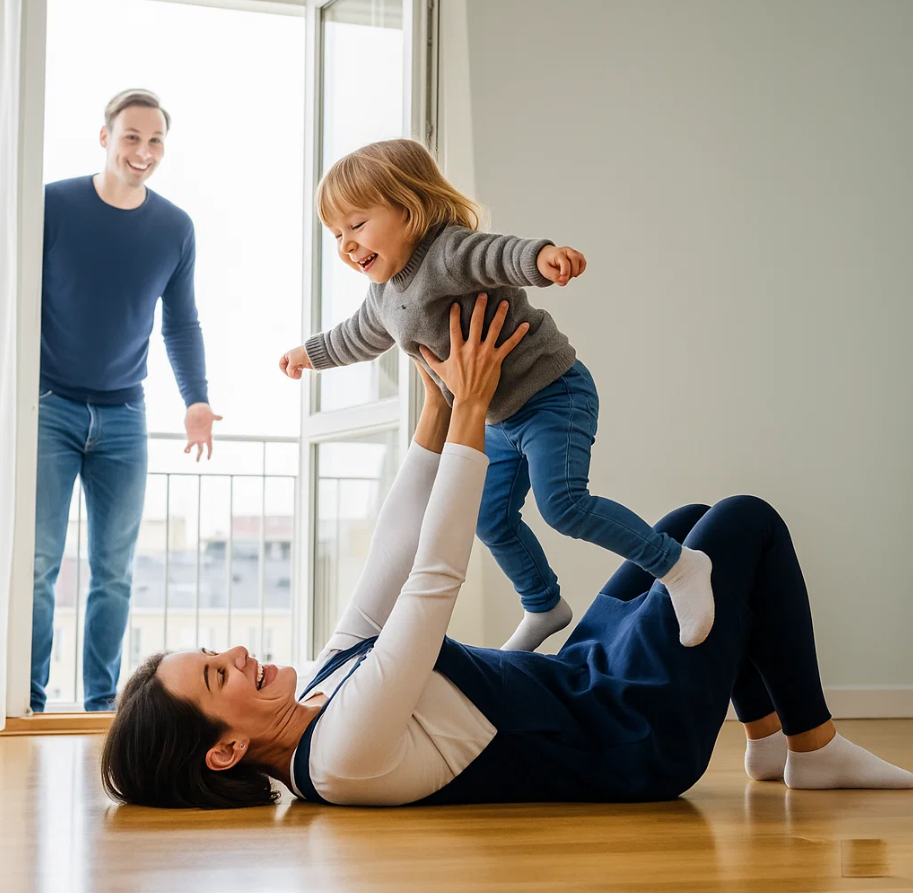 Sophie je ležala na leđima na podu, a mala Emma je bila iznad nje, kikotajući se od sreće. Ali ono što mu je oduzelo dah bile su Emmine noge.