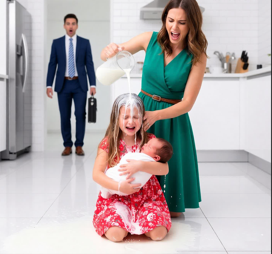 U sledećem trenutku, pre nego što je dete uspelo da se skloni, Linda je zgrabila karton mleka i izlila sadržaj pravo na Emilinu glavu. Mleko joj je natopilo kosu, slilo se niz džemper i kapalo po podu.