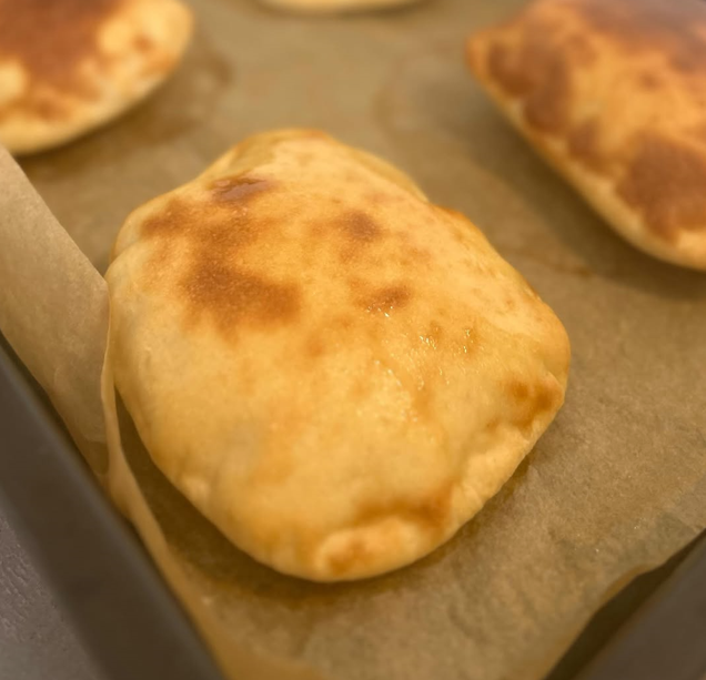 Pecite lepinje 5–8 minuta — toliko je dovoljno da se oblikuje balon i spoljna kora postane blago zlatna. Nakon vađenja iz rerne, lepinje mogu imati različitu veličinu „balona“; to je normalno.