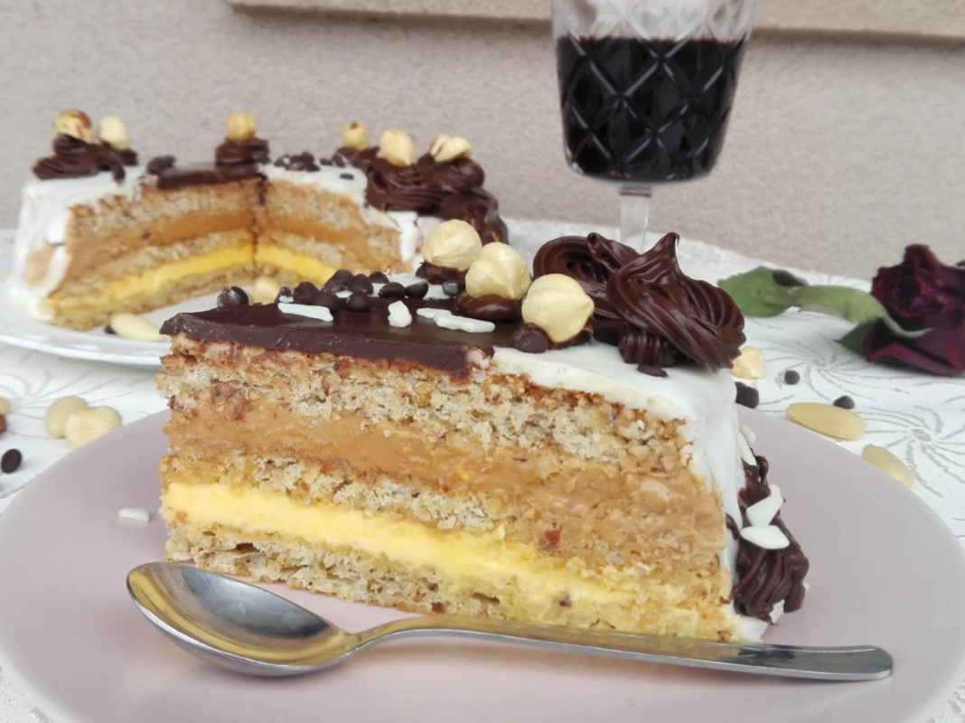Korice od tri vrste orašastih plodova, fil od žumanaca i čokolade, te završni sloj koji može biti lagan ili bogat – zajedno stvaraju desert koji će biti zvijezda svake trpeze, bilo da se radi o rođendanu, prazniku ili porodičnom okupljanju.