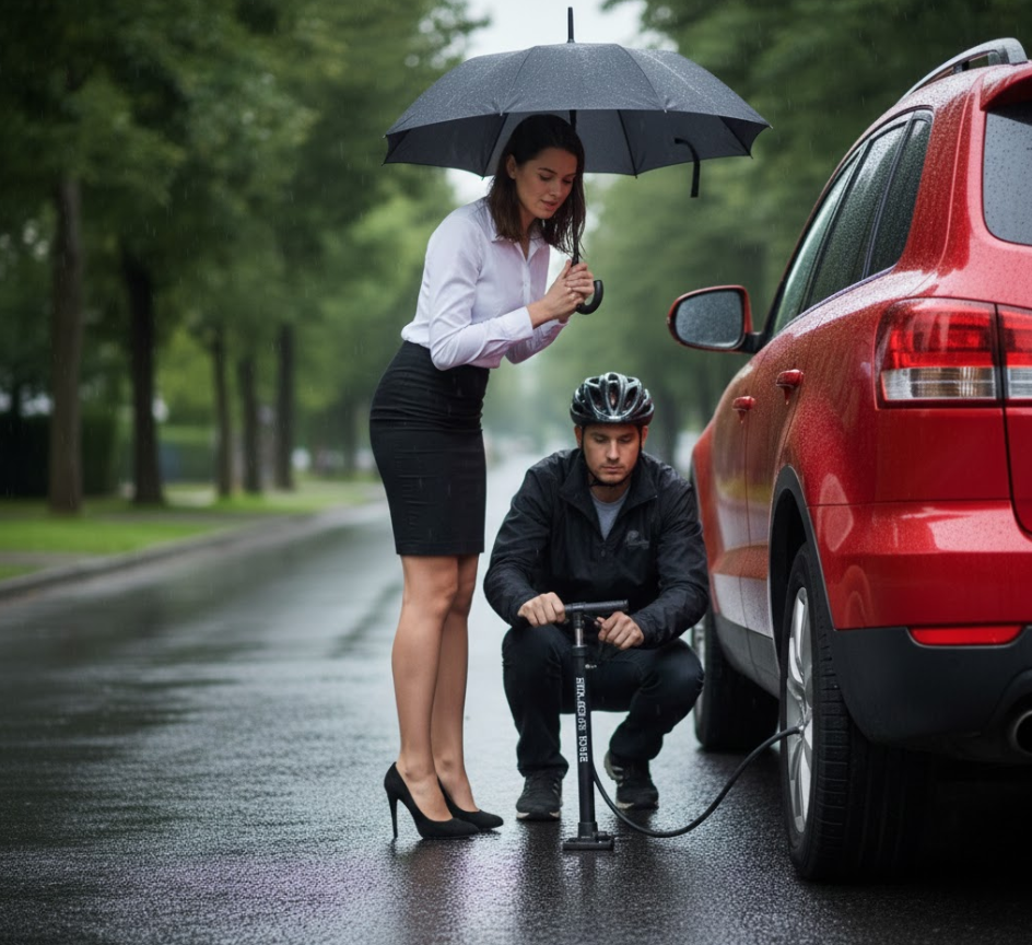 Skretajući u sporednu ulicu, primetio je ženu pored automobila sa probušenom gumom. Očito frustrirana, bez signala na telefonu, delovala je izgubljeno u trci s vremenom. Andrés se ni trenutka nije dvoumio. Pomogao je, uprkos tome što je i sam bio u jurnjavi.