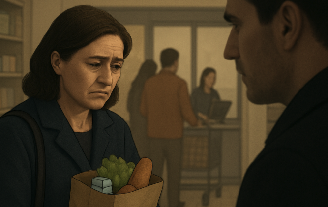 Zoja je stajala u redu za kasu, držeći u rukama vreću s namirnicama i osjećajući kako joj svaki slobodan minut postaje težak. Ljudi oko nje su mljeli, pomjerali kolica, razgovarali o besmislenim stvarima, ali njoj je bila važan samo jedan nemirni osjećaj: činilo joj se kao da je neko pažljivo razgleda, kao da je tu, iza njene naramenice, hladan i uporan pogled koji upija svaki deo njenog lica. Taj nevidljivi posmatrač delovao je toliko konkretnim da joj je srce počelo ubrzano kucati dok je izlazila iz reda.
