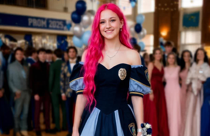 Kada se Wren pojavila spremna za maturu, njen izgled ostavio je snažan utisak. Haljina je bila elegantna, ali i posebna — spoj prošlosti i sadašnjosti.