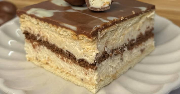 Ovaj desert je posebno zanimljiv jer u sebi kombinuje popularne Schoko-bons bombone, koje mnogi već obožavaju same po sebi, sa laganom kremom i hrskavom podlogom. Rezultat je spoj različitih tekstura i ukusa koji se savršeno dopunjuju.