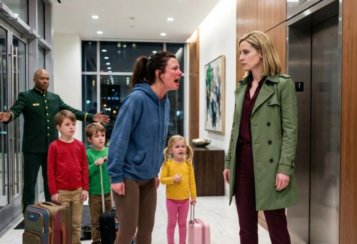Nedugo zatim, pojavila se Vanesa sa troje umorne dece i prtljagom. Očekivala je da će bez problema ući, ali ju je zaustavio portir.