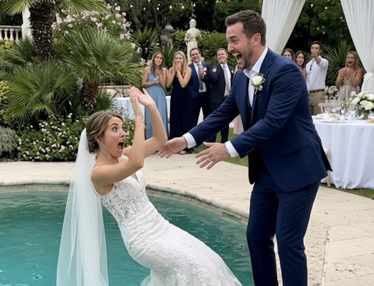 Dok je večernja zabava bila u punom jeku, Theo je prišao mikrofonskom stubu pored bazena. Pozvao je mladu da mu se približi, sugerišući romantičnu gestu. Međutim, neočekivano, gurnuo je mladu u bazen.