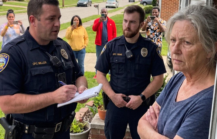 Njena majka stoji na trijemu, vidno iscrpljena, dok policajci pokušavaju da razjasne situaciju.