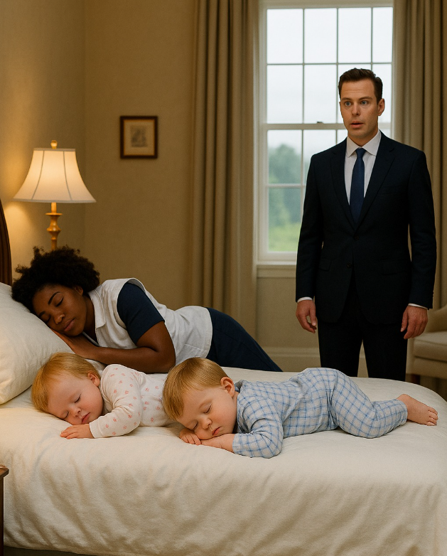 Na krevetu, između dvoje malenih dečaka, sedela je Maya Williams – dadilja, tiha, crne kože i blagih pokreta. Njene oči bile su širom otvorene, ne od krivice, već od iznenađenja. Pored nje, dvojica blizanaca, Ethan i Eli, konačno su spavali spokojno, prvi put posle mnogo meseci.