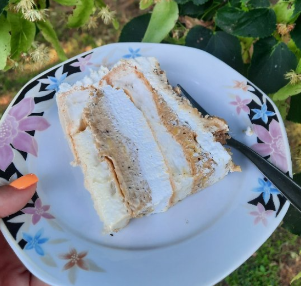 Drugi fil je najjednostavniji deo – ali i onaj koji daje torti lakoću. Umutite slatku pavlaku dok ne dobijete čvrst i pufnast šlag. Ovaj sloj se koristi između kora i fila, da bi torta dobila na mekoći i osvežavajućem ukusu.